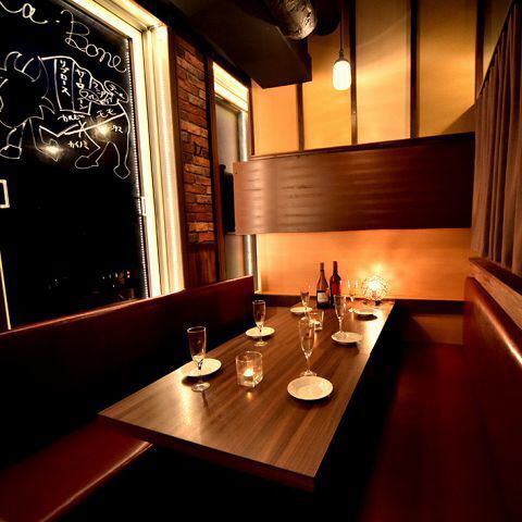 【新宿人氣包廂肉吧】提供讓您忘卻繁忙行程的空間。柔和燈光的包廂,是女生聚會、團體約會、宴會、紀念日等各種場合的理想選擇!我們引以為傲的酒吧料理和精選飲品,將為您的派對增添一抹優雅。 ◎完全私密的空間,讓您無需在意周圍的人,盡情享受飲品!